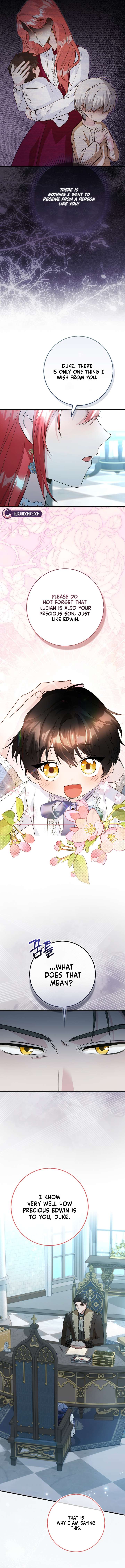She should have said something else. Like sign something that guarantees Lucian as the heir. Or that she will move out and is taking Lucian with her. Or that she wants to replace some staff members. She already knows that he ends up not taking care of either child in the future