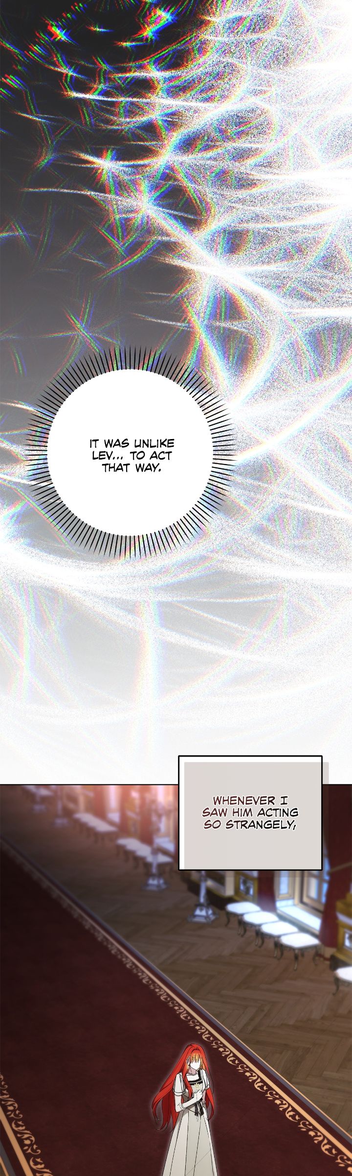 Hmm I think she might have some degree of magical resistance. Like how the memory spell on her was slipping-her hair color returned and then with someone merely mentioning her mom, her memories returned. Then we can guess that the emperor has been under some sort of spell based on him being bedridden all this time and how it specifically says Labdunum convinced him to suggest the coronation etc. So my guess is that the magic circle outside his door is somehow part of why he’s bedridden and the control over him and that whatever happened when she stepped on it allowed the emporer to regain control enough for this exchange where he’s asking her to save the empire. Anyway, that’s my current theory.